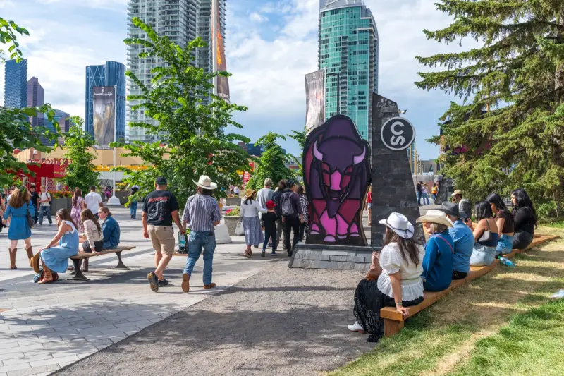 The culturally rich site at the crossroads of the Bow and Elbow Rivers has long been a vital community hub — first as a regional gathering place for Indigenous groups, then as the birthplace of Calgary itself, and now as the epicenter of Calgary Stampede. Celebrating both the land and animals that shaped the city, groundcubed revitalized the space with three distinct, vibrant entry points designed for contemporary connection.