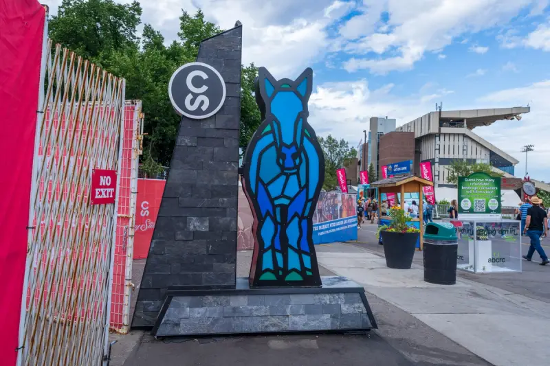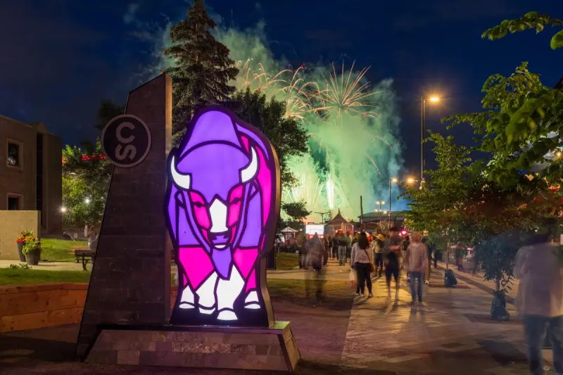 The project introduces a series of “Gatekeepers,” or artful animal figures serving as striking welcome features. These Gatekeepers — buffalo, horse, and bull — respectively represent the past, present, and future while seamlessly guiding visitors into Stampede Park. The internally illuminated pieces feature custom-colored panels framed in black steel and are mounted on plinths that double as signage and wayfinding elements.