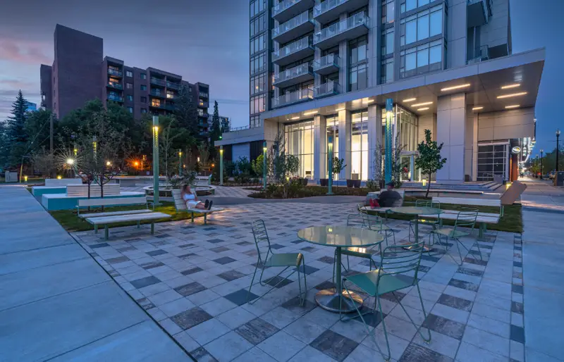 Located in downtown Calgary's bustling Beltline neighbourhood, Lois Szabo Commons is a mixed-use flex space where locals can gather, get active and access the metropolitan area with ease.