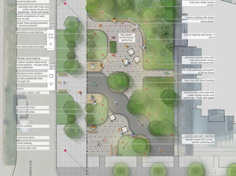 Creating Calgary's urban escape: A welcoming, walkable and flexible park designed for local work and play
