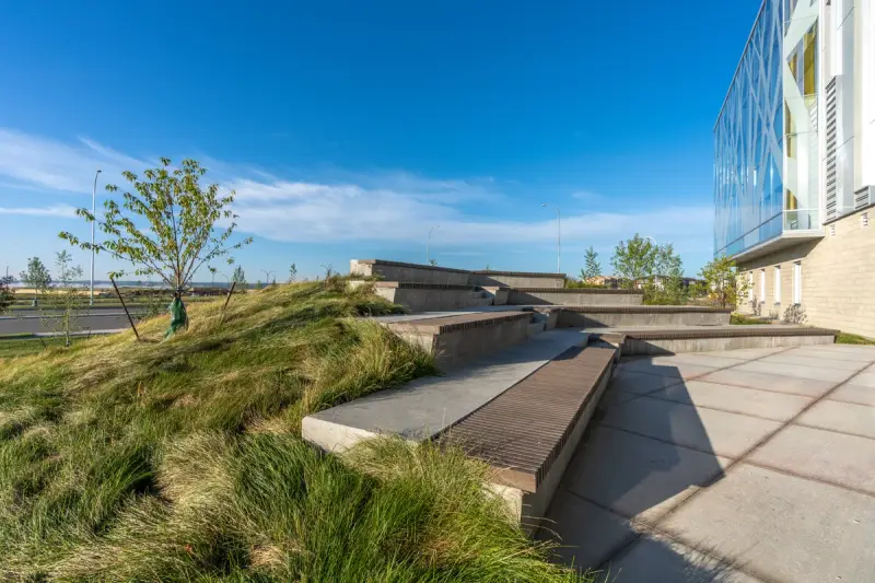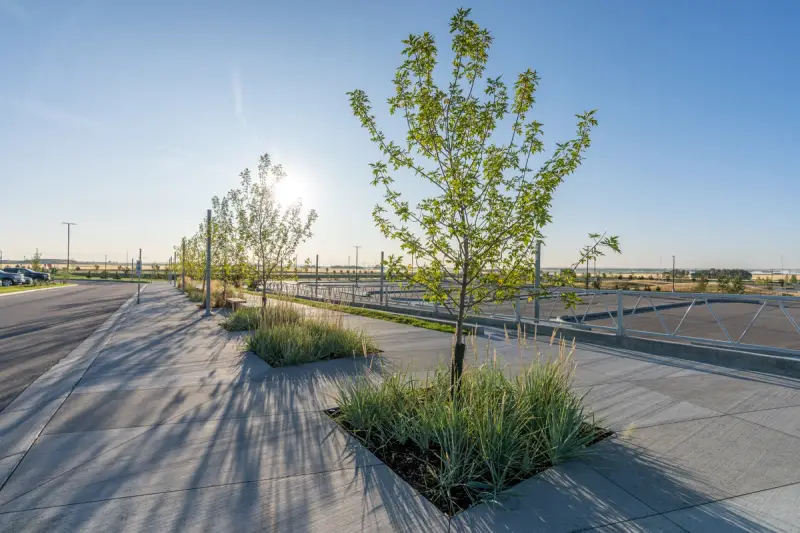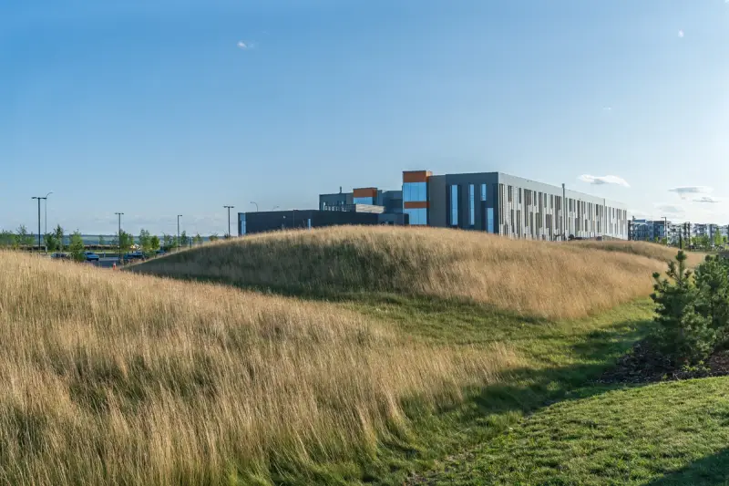 Sustainability measures such as low-water landscapes, bio-retention, and clustered native plantings reinforce the facility’s role as a model for environmentally responsible development.